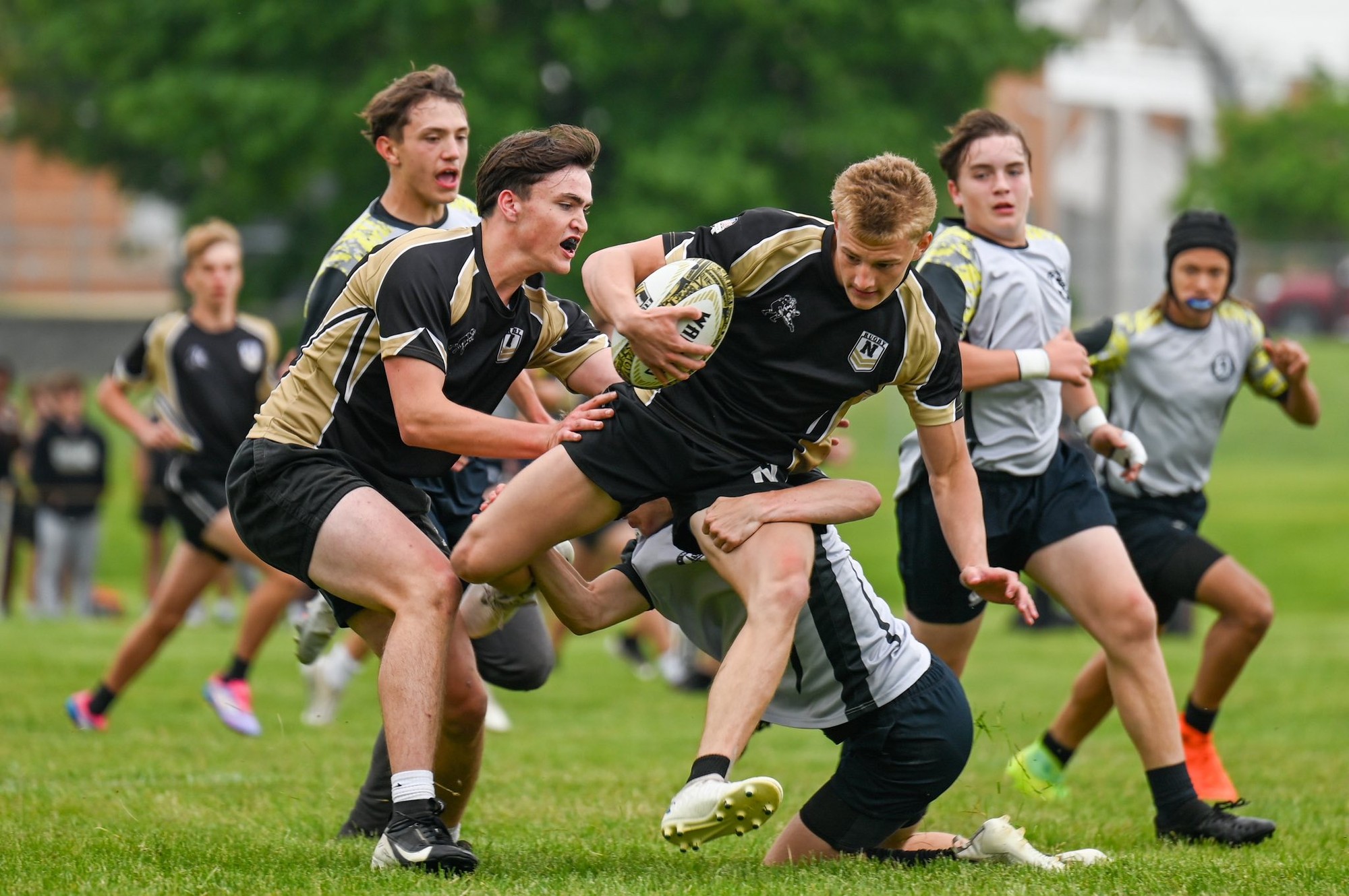 Our club does play under the Noblesville Miller banner, but we still hold our club affiliation. The school provides a field, maintenance, and indoor practice scheduling for free, but we are not a school sponsored sport. The club is run by a parent board and is governed by Rugby Indiana and USA Rugby. Since we are not a school sponsored sport, we have athletes participate from different schools in Hamilton County that do not have a rugby program.